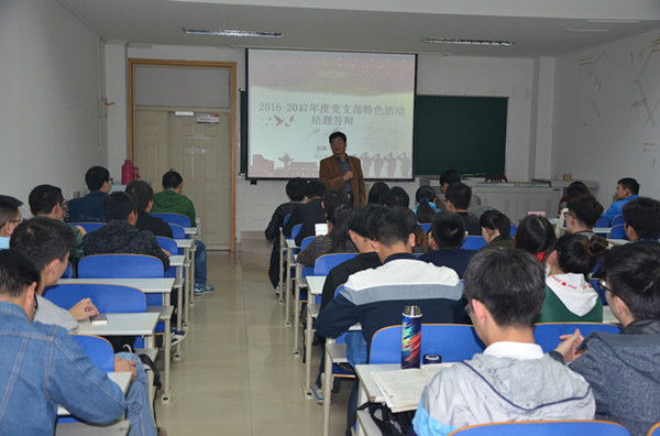 学生党支部活动内容丰富多彩,形式各具特色,学生党员们都为支部活动做了大量工作,付出了辛勤劳动,对所有支部活动表示了肯定。十九大报告对基层党建工作做出了重要指示,我们要牢记“四个伟大”,做好党建工程,创新基层组织设置与支部活动形式。他建议,要进一步体现支部的主体作用,发挥支部的战斗力和凝聚力,发挥党员的先锋模范作用,结合自己所学专业,进一步完善支部的特色活动。