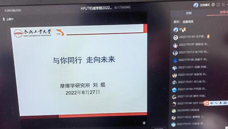 为帮助新生了解学院辉煌的 历史、目前的整体状况、未来的发展方向,理解学院文化和精神的内涵、特色,教育引导研究生知校、爱校、荣校,8月27日下午,我院举办以“与你同行,走向未来”为主题的2022级研究生新生校史院情教育线上活动。本次会议由我院摩擦所所长刘焜教授主讲,我院2022级全体研究生新生参加。