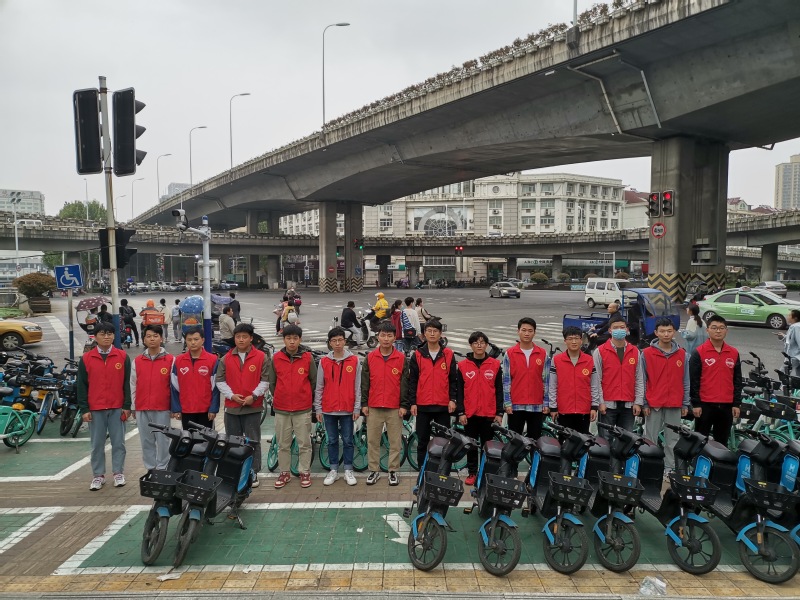 活动前期,同学们积极响应,争相报名,想要利用自己学习之外的时间回报学校、反哺社会。活动中,志愿者们分组行动,将共享单车及共享电动车按类别摆放在共享单车停靠点,扶起歪斜、倒下的自行车辆,志愿者们将车框中的广告单、垃圾按类别扔入垃圾箱内。同时,志愿者们向骑车的市民、同学发放倡导文明出行的宣传单。整个过程虽苦累,但让同学们度过了一个远离电子产品,缓解科研压力,挥洒汗水,强身健体的闲暇时光。