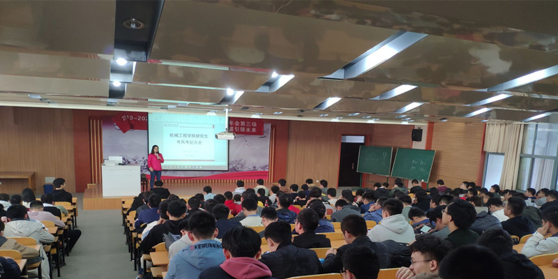 在机械楼214教室召开“研究生考风考纪”大会。本次大会由研究生辅导员侯静老师主持,2019级全体硕、博研究生到场参加了此次会议。