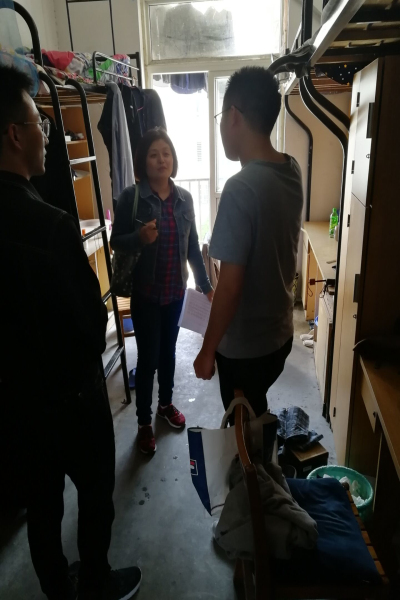我院研究生会在学院研究生辅导员侯静的带领下,分批次依次对我院三个年级的研究生宿舍进行安全卫生大检查。在检查过程中,侯静带领学生骨干们着重检查了洗手间、阳台、桌柜等卫生死角,多次嘱咐打扫时要注意细节问题,同时还关切的叮嘱同学们要注意多通风,勤晾晒被子衣物等,注意防止疾病的传播。在检查过程中,侯静也和同学们亲切的交谈了学习和生活等方面的话题,排查了研究生校外住宿的情况。