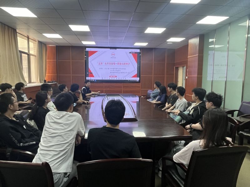 在格物楼308会议室组织开展基层就业事迹分享会,学院2023届机械专业硕士研究生校友、扬州市邗江区槐泗镇选调生王宜藩应邀在线上会议平台做了题为“土地从不辜负每一颗奋斗的种子”的专题报告。