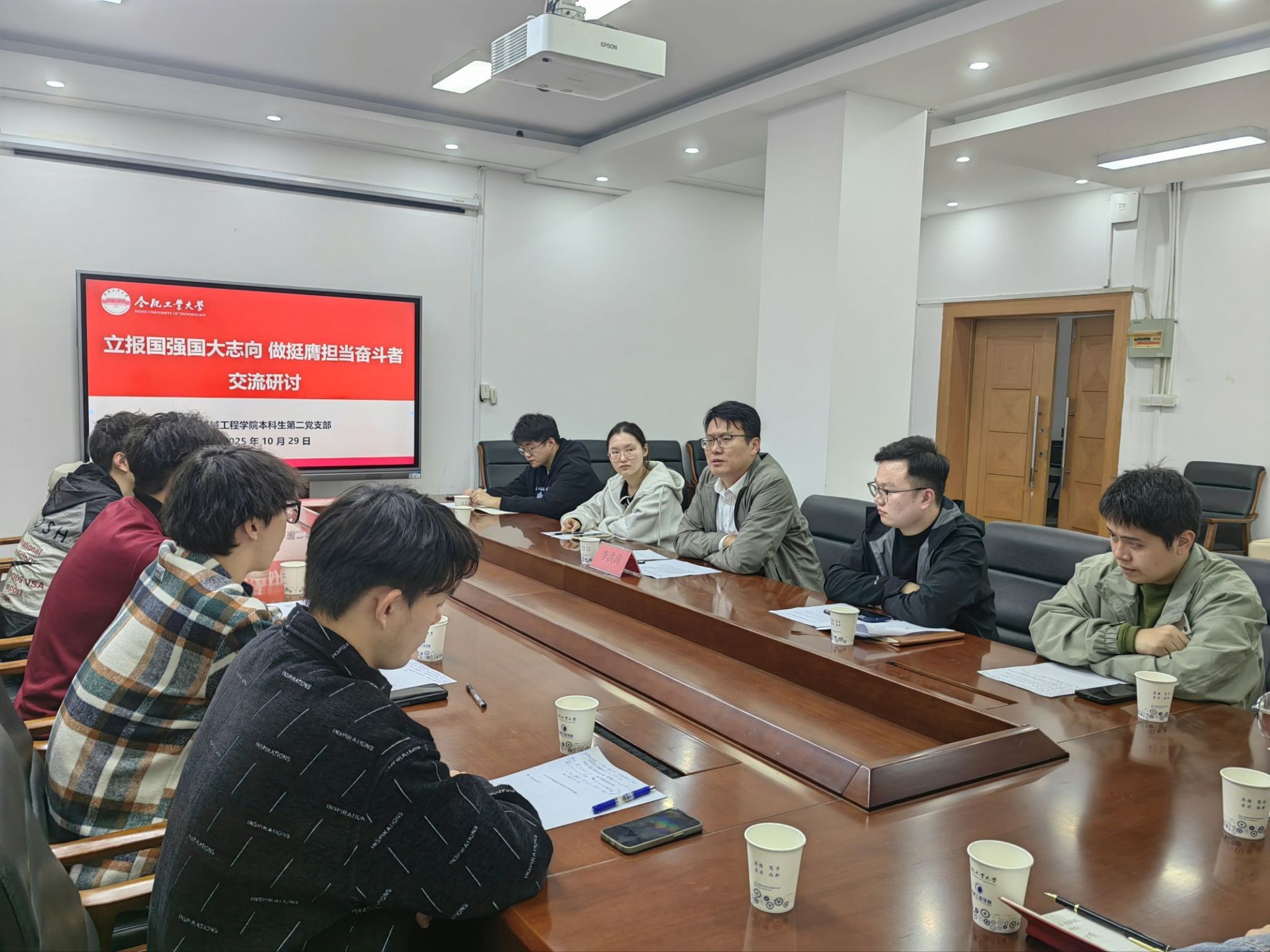 以研促思,凝聚担当力量。在“立报国强国大志向,做挺膺担当奋斗者”主题研讨环节,支部党员结合自身学习生活与未来规划,围绕“如何做有理想、负责任的行动主义者”“如何将个人理想融入国家发展大局,立足专业所学,积极投身科研创新实践”开展交流,大家表示将在智能制造、航空航天等领域深耕,以技术创新助力国家高端装备发展;同时将严守纪律底线,养成勤俭节约、诚信正直的优良作风。