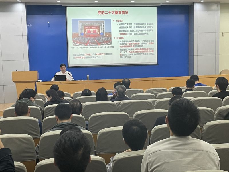 按照学院主题教育工作安排,5月24日下午,学院党委书记张显东为教师党员讲授专题党课,带领学院教师党员集体学习习近平总书记在学习贯彻习近平新时代中国特色社会主义思想主题教育工作会议上的讲话精神和党的二十大精神,学院110余名教师党员听取党课。