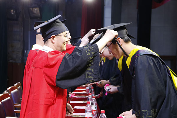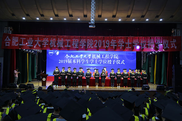 关于授予学士学位的决定》,决定授予机械设计制造及其自动化专业王亚男、王硕、封智鑫、厉琦等318人工学学士学位;工业工程专业刘震、刘海涛、鲍诗娴、杨佳军等79人工学学士学位;飞行器制造工程专业齐胜旺、任桐欣、张德鑫等38人工学学士学位。随后,在隆重的加冕进行曲中,老师们为获得学士学位的全体学生颁发学位证书,扶正流苏,并合影留念。