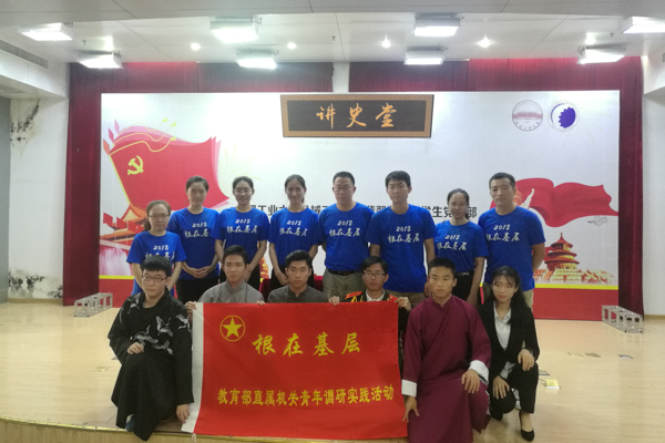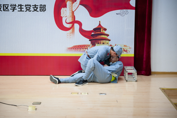 在建艺馆报告厅创新性地开展了系列连续评书栏目第三期“讲史堂”集中展示活动。教育部直属机关“根在基层”教育实践调研团、校团委副书记陈竹、马克思主义学院党史专家房彬、学院党委书记韩江、副书记副院长郑召丽、翡翠湖校区党支部全体党员及2018级学生代表220余人共同参加了此次活动。