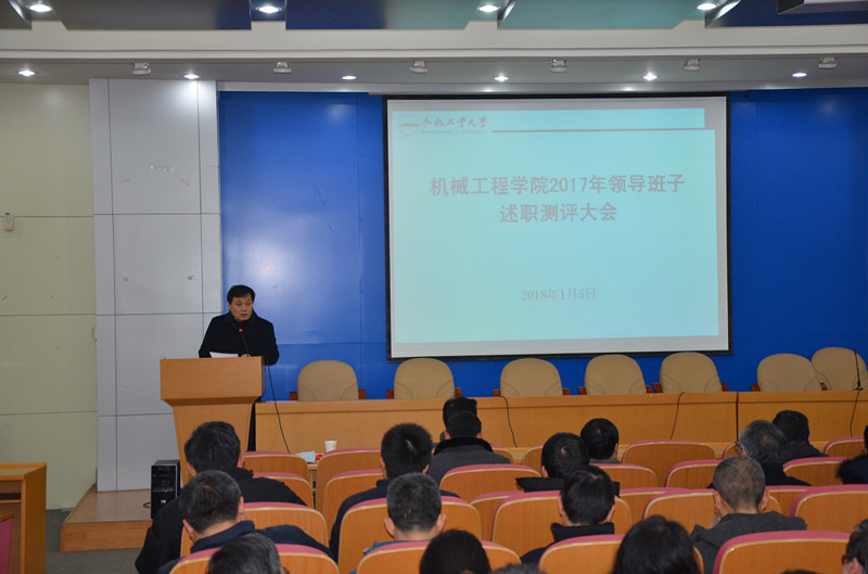 在格物楼二楼报告厅召开了2017年度院领导班子干部述职测评会。学院领导班子成员及全院教师参加了会议。