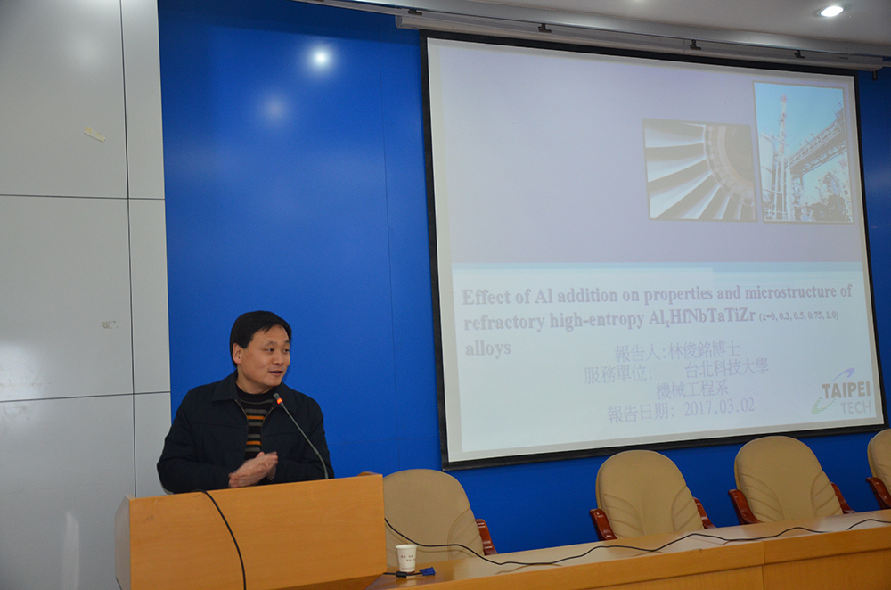 林俊铭博士应邀来我院交流访问。林博士在格物楼二楼学术报告厅为我院师生作了题为“Effect of Al addition on properties and microstructure of refractory high-entropy AlxHfNbTaTiZr (x=0, 0.3, 0.5, 0.75, 1.0) alloys”的学术报告。报告由麻豆