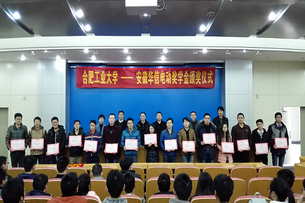 此次合肥工大-安徽华信电动奖学金共出资3万元用于奖励在校的30名品学兼优、励志创新的研究生和本科生。颁奖仪式由麻豆