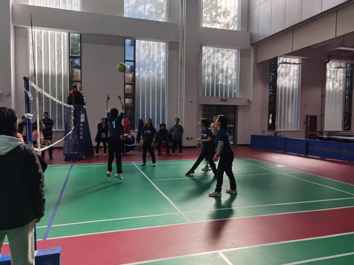 2023年教职工气排球比赛在屯溪路校区羽乒馆进行,历时4天共计186场比赛,于19日下午4点落下帷幕。学院教工气排球队经过激烈角逐获得佳绩。