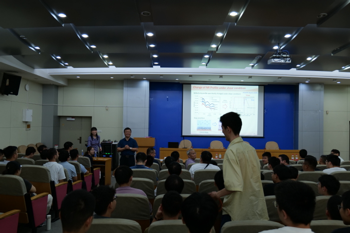 进行了学术交流。9月14日上午,学院在格物楼214报告厅举行了学术报告会,报告会由刘焜教授主持,马培勇副院长代表学院对日方来访师生表示热烈欢迎,并期望通过此次交流进一步促进学院与日本高校之间的国际合作。随后,京都大学平山朋子教授和名古屋大学宋玉玺长聘助理教授进行了精彩的报告,两位学者围绕边界润滑介绍了其团队的研究成果,近200名师生参加了报告会并展开了热烈的讨论。9月14日下午,我院摩擦所师生与日方来访师生进行了学术研讨会。研讨会由平山朋子教授主持,京都工艺纤维大学山下直辉长聘助理教授、3名京都大学研究生以及5名我院摩擦所研究生分别进行了学术汇报。