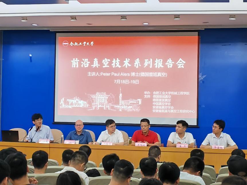 -普旭真空/普发真空合作协议的深入、继续落实合作内容,德国普旭真空著名真空专家Peter Paul Alers博士应邀来华、走进校园,开展为期两天的“前沿真空技术系列报告会”。除了学校师生,此次报告会吸引了来自近40家单位的200多位真空领域学者及行业专家参加。普旭真空、苏州迈为科技股份有限公司、安徽赛特新材有限公司、卓凌精密设备(合肥)有限公司为本次报告会的成功举办提供了支持。