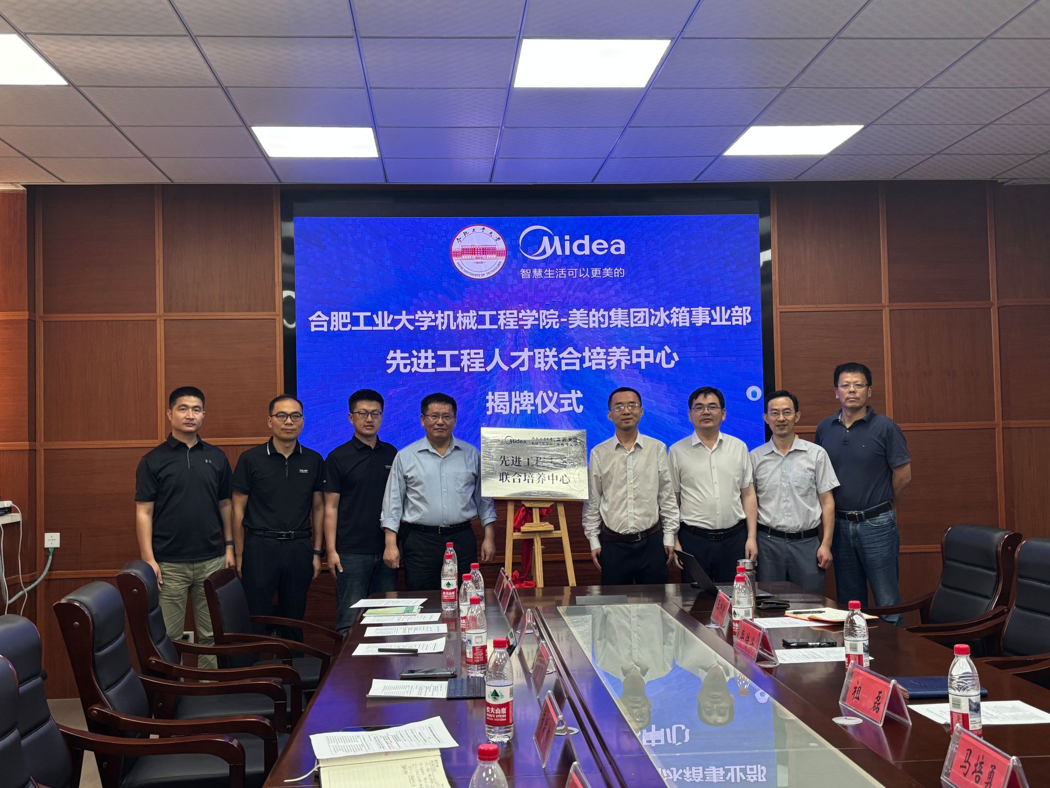 与美的集团冰箱事业部共建的“先进工程人才联合培养中心”揭牌仪式在格物楼308成功举行。美的冰箱事业部黄群健院长、胡海宏部长、王晓旺部长,学院党委书记祖磊、副院长马培勇、毕传兴教授、王旭迪教授出席仪式。