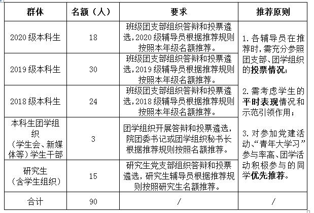 7、产生候选人。各年级辅导员或团学组织负责老师严格按照推荐规则(见推荐名额表格最后一列),根据分配名额,确定入党积极分子的推荐候选人。