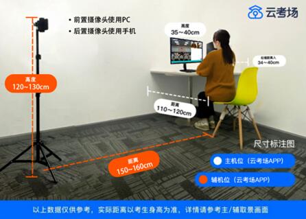 网络远程面试主设备,需要正向面对考生,复试全程开启,摄像头正对考生。复试过程中,要求视频中考生双手和头部全程在视频录像范围。网络远程面试监考及备用设备,摆放在考生侧后方(与考生后背面成45°角),能够全程拍摄考生本人和电脑屏幕,复试全程开启。