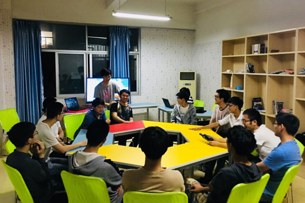 学生在综合楼215开展“诗情画意,诗词机械”特色读书活动。此次活动邀请麻豆