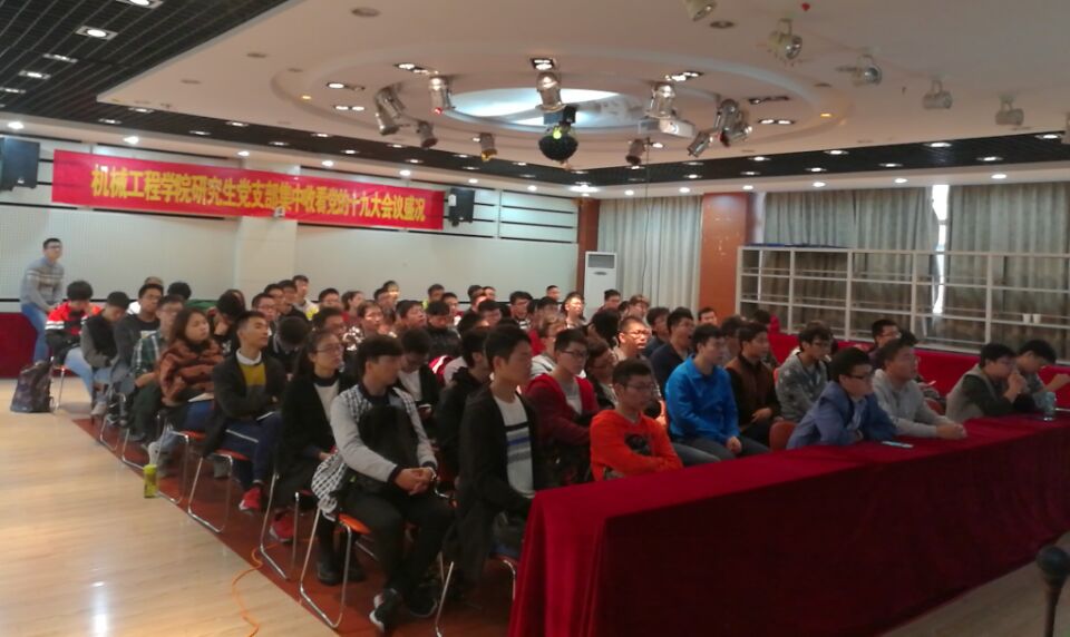 为了全面了解“十九大”盛况,及时领会“十九大”精神,深入学习党的方针政策,加强广大学生党员的党性修养,我院研究生支部党员于10月18日在格物楼316多功能厅集中观看了党的十九大盛况。 上午9点,观看直播活动准时开始。伴随着嘹亮的国歌声,全体学生起立,他们昂首挺胸,神情庄严。全体学生党员聚精会神地聆听了习近平总书记做的报告,并时不时地在笔记本上记下要点。